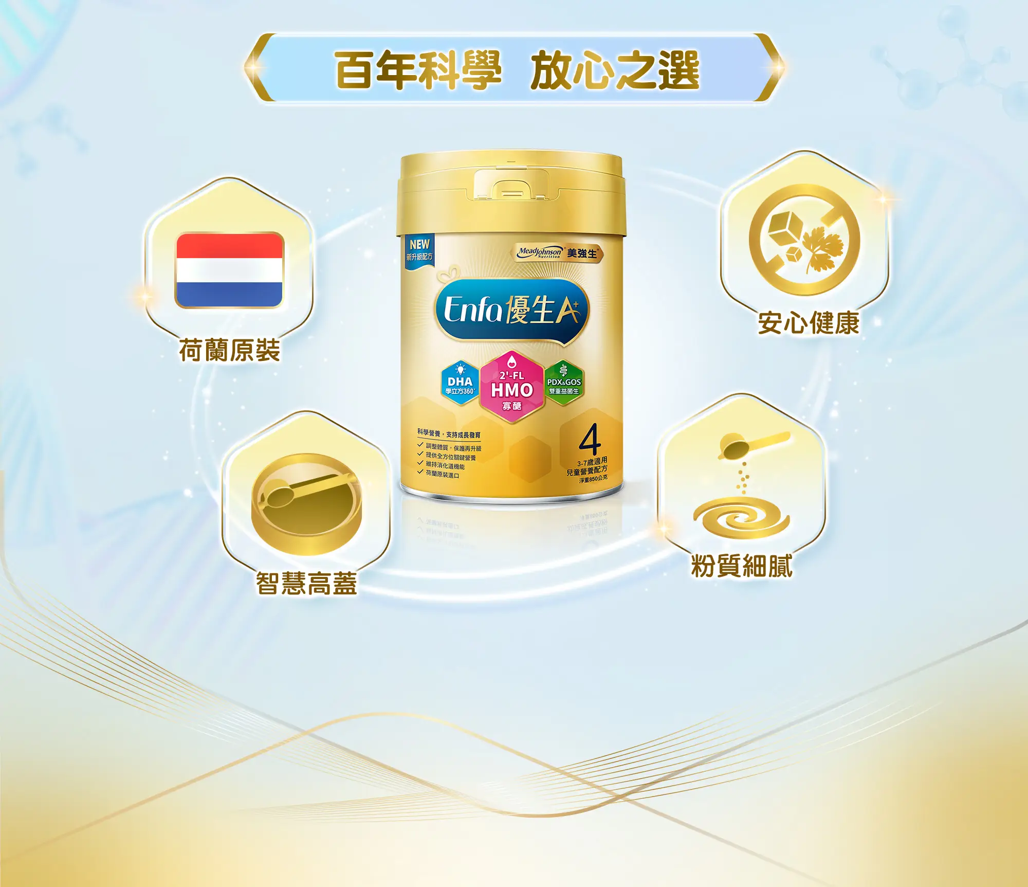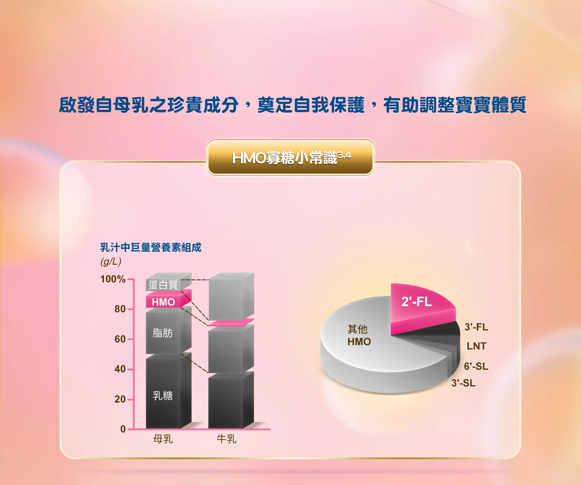 * 本產品中添加的HMO寡醣係指2'-岩藻糖基乳糖,經微生物發酵純化製得,是啟發自母乳寡醣的獨特成分