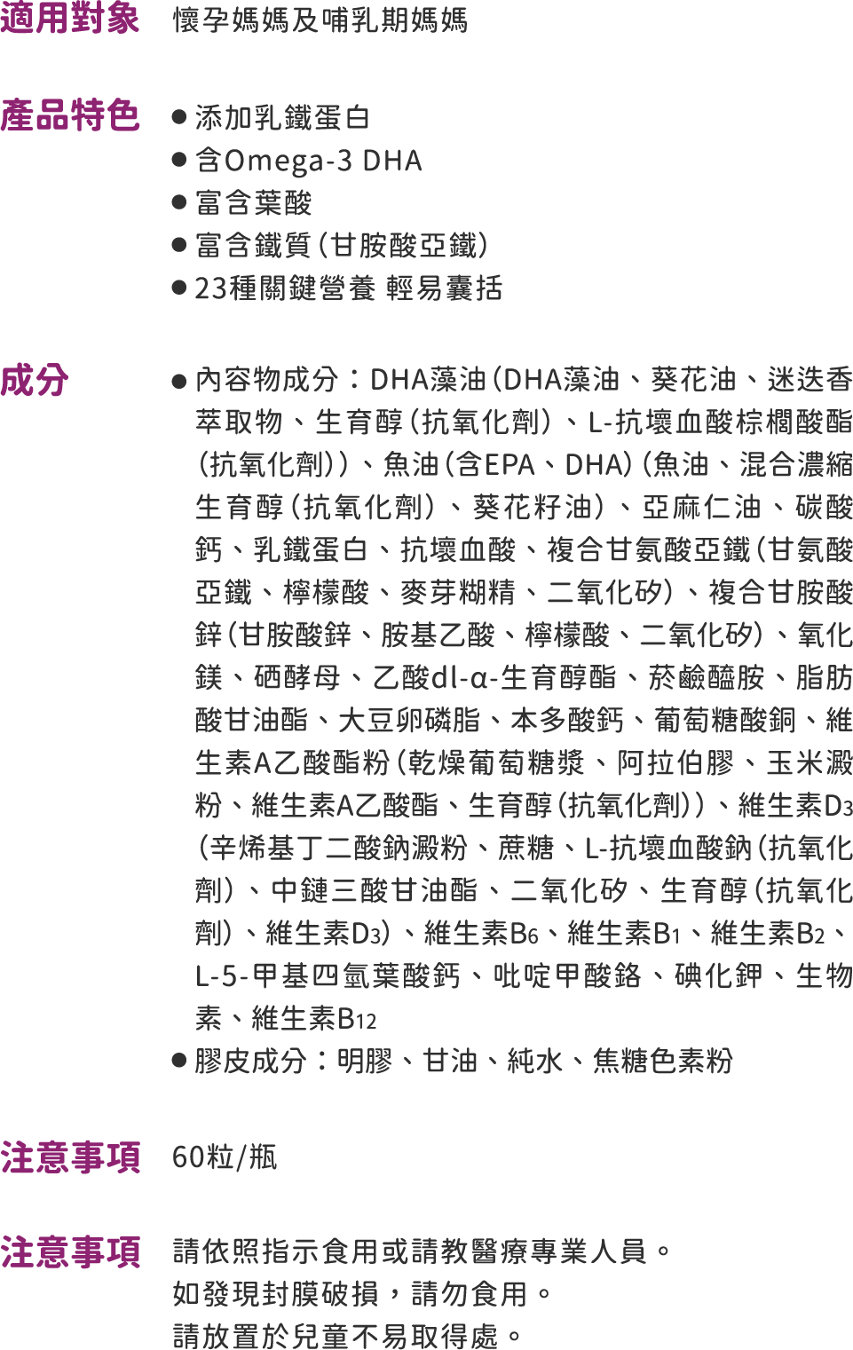 珍貴營養價值,貼近妳與寶寶的需求